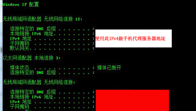 开启wifi后(一定先开启) 运行- cmd – ipconfig