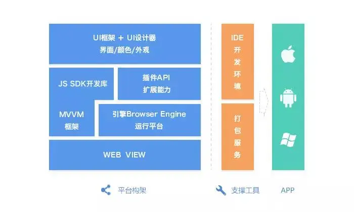 AppCan将App底层复杂的原生功能封装在引擎、插件中,开发者仅需调用接口、打包编译,就可以获得原生功能;灵活的插件扩展机制。