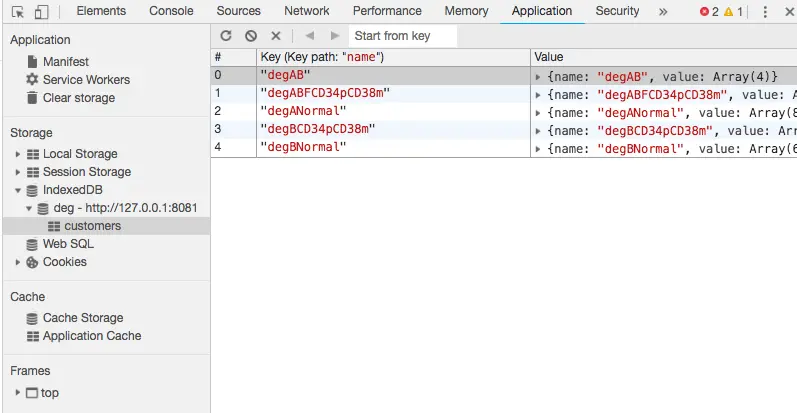 ok~那么我们可以看到浏览器端 indexedDB 数据存放的情况啦!