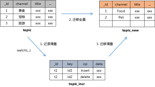 - 在全量迁移完成后,便开始最后一步:增量迁移