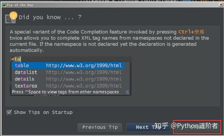 其实这个是Pycharm的提示信息,一般是Pycharm的简易或快捷方式介绍或者其他的Pycharm功能说明,大家完全可以不用理会,直接点击右下方的“Close”即可,不会对你产生任何影响。