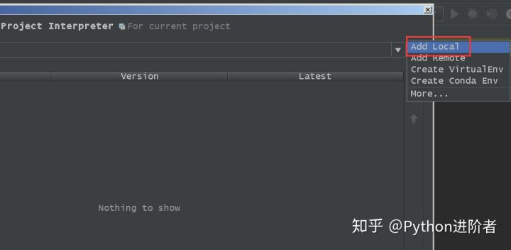 12、之后会弹出下图的对话框,点击第一个“Add Local”,表示从本地添加Python解释器。