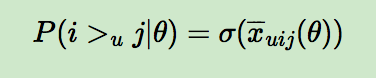 而对于P(i >u j|θ)这个概率,我们可以使用下面这个式子来代替: