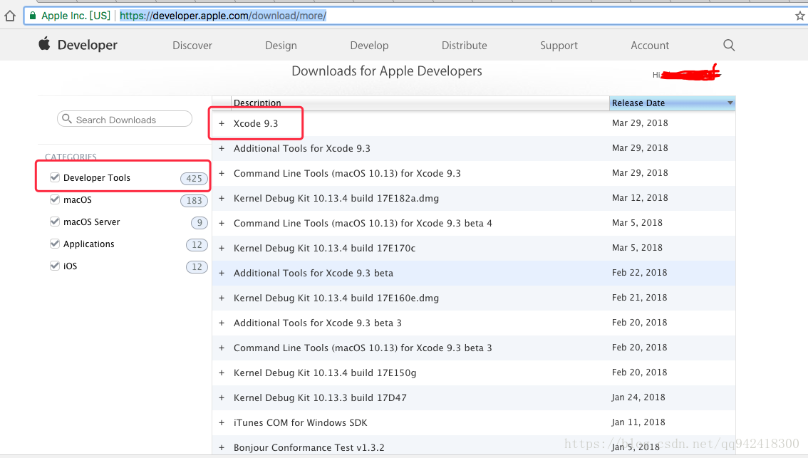 当然也开发在苹果开发者官网直接下载dmg安装文件,可以选择下载各个版本的Xcode,链接: https://developer.apple.com/download 打开链接如下图: