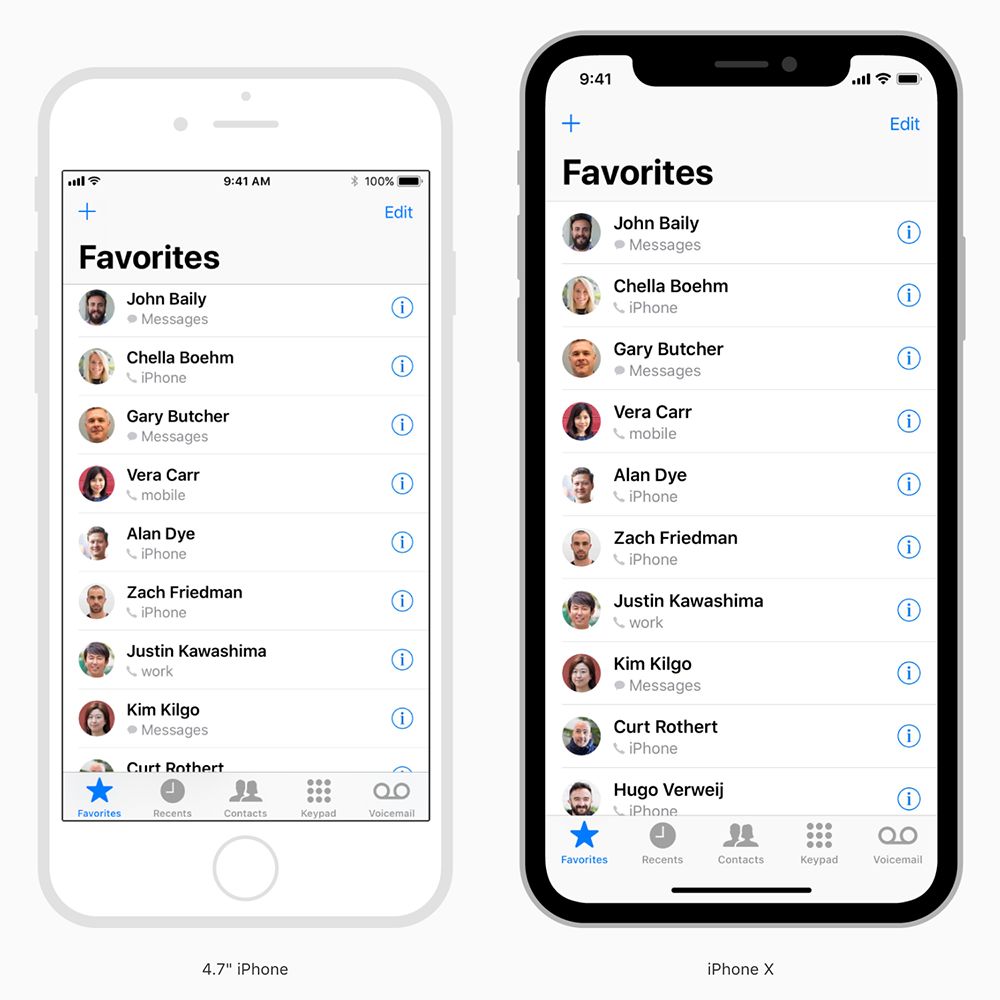 此外,由于在 iPhone X 屏幕顶部状态栏区域有“齐刘海”,以及在屏幕底部增加了“操作条”,如下图所示,因此,我们在开发中需要注意安全区域的问题。