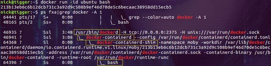 systemd---dockerd---docker-containerd---docker-containerd-shim---bash
