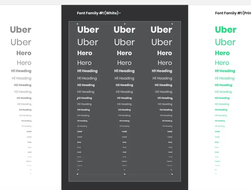 就像在第一讲中我曾经对基准色元素所做的那样,当我完成了两套字体家族的调试之后,给他们加上相对应的标题(比如 字体家族 #1 (黑), 字体家族 #2 (灰)等等。然后把他们放在一块儿并且锁定。