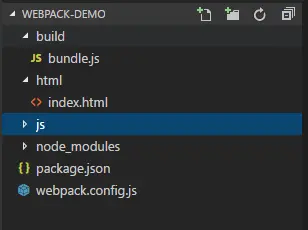 这里面我们在body中编写了一个id为root的div,稍后我们会通过js代码,在root下添一个div标签,其内容是:Hello Webpack!。紧接着,我们引入了一个script标签,它的资源引用指向build文件夹下的bundle.js文件(我们会在webpack输出配置中配置输出的文件名,这个稍后就会讲)。