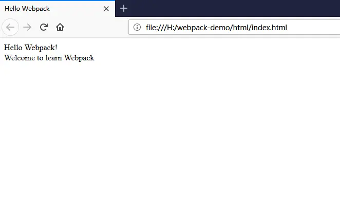 然后我们在浏览器中打开index.html即可发现我们浏览器中显示了:Hello Webpack!
