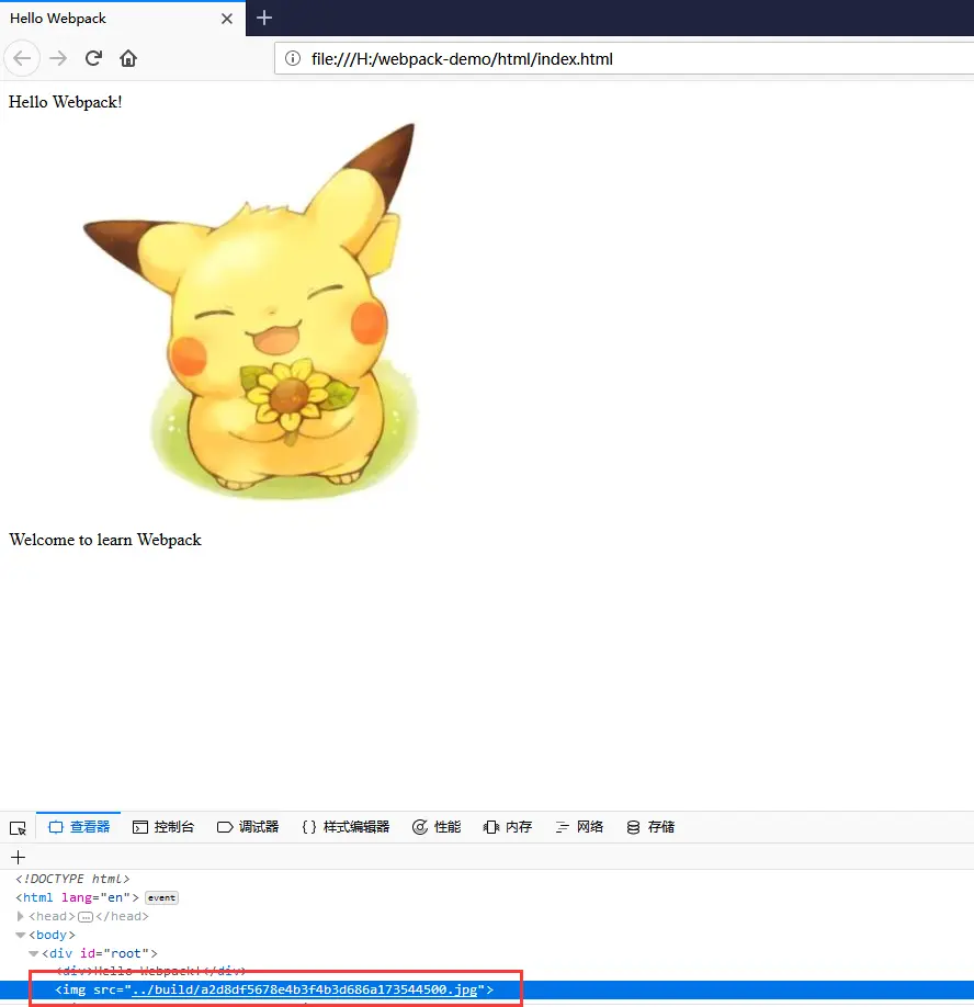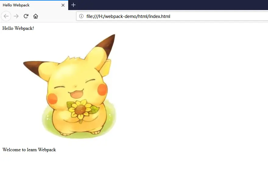 打包完成后,我们运行index.html文件,我们可以看到图片就被加载到页面中了: