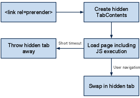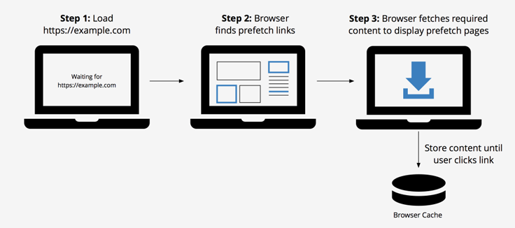像上面提到的,link prefetching 假设用户将请求它们,所以允许浏览器获取资源并将他们存储在缓存中。浏览器会寻找 HTML <link> 元素中的 prefetch 或者 HTTP 头中如下的 Link: