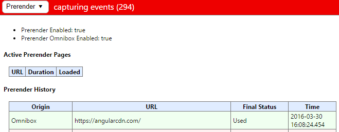 要小心的使用 prerender,因为它将会加载很多资源并且可能造成带宽的浪费,尤其是在移动设备上。还要注意的是,你无法在 Chrome DevTools 中进行测试,而是在 chrome://net-internals/#prerender 中看是否有页面被 prerendered 了,你也可以在 prerender-test.appspot.com 进行测试。