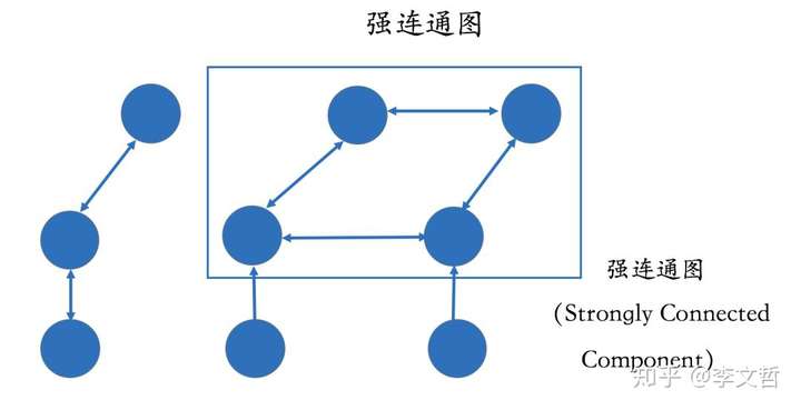 再比如,我们也可以从知识图谱中找出强连通图,并把它标记出来,然后做进一步风险分析。强连通图意味着每一个节点都可以通过某种路径达到其他的点,也就说明这些节点之间有很强的关系。