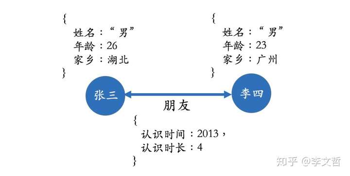 比如在下面的知识图谱中,我们完全可以把一些信息比如“年龄”,“家乡”放到传统的关系型数据库当中,因为这些数据对于:a. 分析关系来说没有太多作用 b. 访问频率低,放在知识图谱上反而影响效率