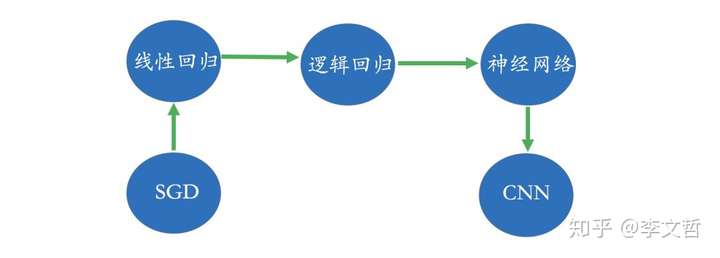 比如对于教育行业,我们经常谈论个性化教育、因材施教的理念。其核心在于理解学生当前的知识体系,而且这种知识体系依赖于我们所获取到的数据比如交互数据、评测数据、互动数据等等。为了分析学习路径以及知识结构,我们则需要针对于一个领域的概念知识图谱,简单来讲就是概念拓扑结构。在下面的图中,我们给出了一个非常简单的概念图谱:比如为了学习逻辑回归则需要先理解线性回归;为了学习CNN,得对神经网络有所理解等等。所有对学生的评测、互动分析都离不开概念图谱这个底层的数据。