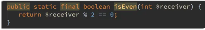 fun Int.isEven() { return it % 2 == 0 }
