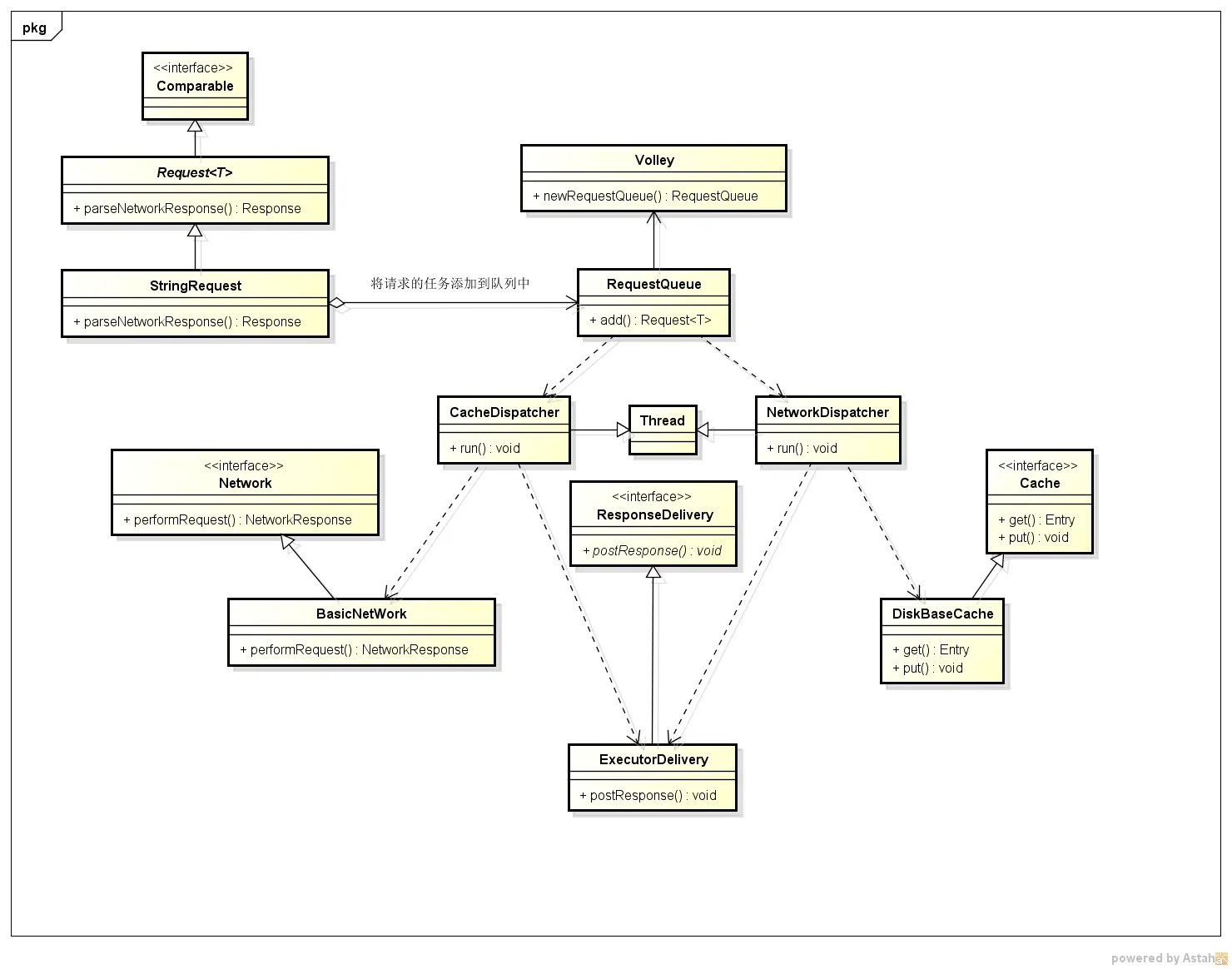 自己画了一个Volley框架的时序图,帮助理解。Volley框架实现原理: