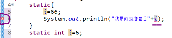 这里有一个细节需要注意:静态代码块中只能访问到定义在静态代码块之前的变量。如果此静态变量在静态代码块后边,那么静态代码块里只能对其赋值,不可访问: