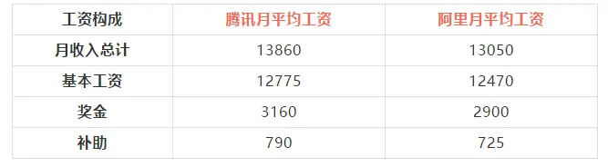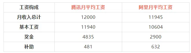 经过比较,腾讯的Java开发工程师薪资高于阿里。下面来看两家公司这个职位员工的具体工资构成。