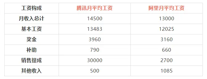 经过比较,腾讯的产品经理薪资高于阿里。下面来看两家公司这个职位员工的具体工资构成。