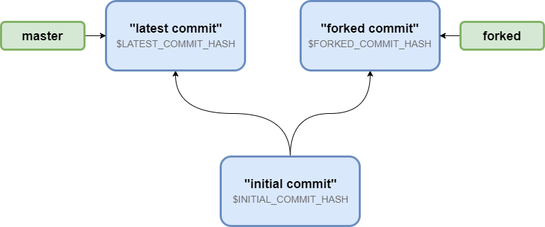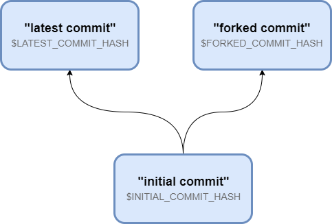 $ LATEST_COMMIT_HASH=$( \ echo 'latest commit' | git commit-tree $LATEST_TREE_HASH -p $INITIAL_COMMIT_HASH )