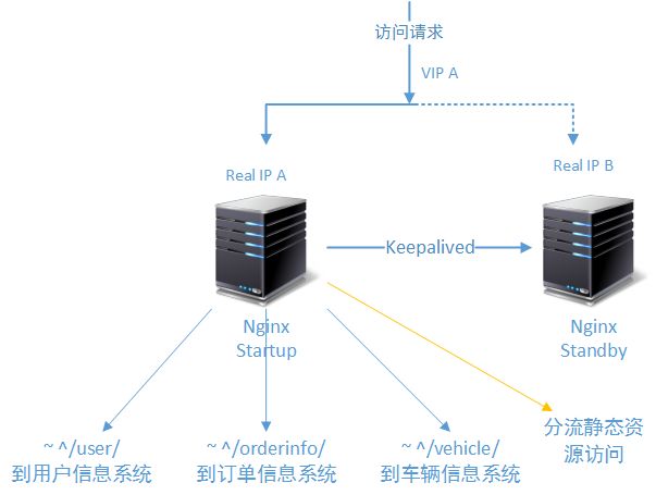 为了保证Nginx或者HaProxy服务器的稳定性,可以使用Keepalived或者Heartbeat做一个简单的热备方案。