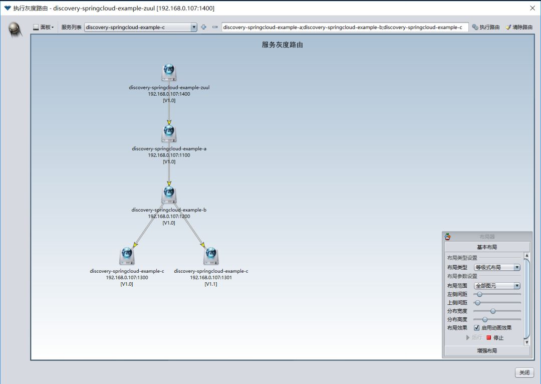 由于网关(1.0)并未指向服务A(V1.1),服务B(V1.1),所以它们是不能被调用的。