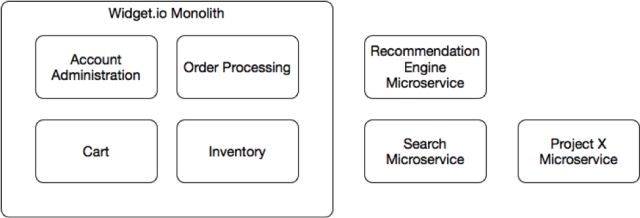 一体化方法通常会阻碍我们快速交付、运行A/B测试和了解用户的能力。回想一下Widget.io这个示例,如下所示:
