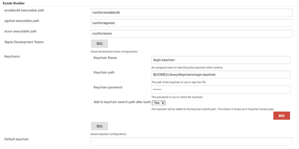 “Keychain path“为钥匙串的本地路径,“Keychain password” 为访问钥匙串的密码。设置完成后不要忘记点击”保存“。