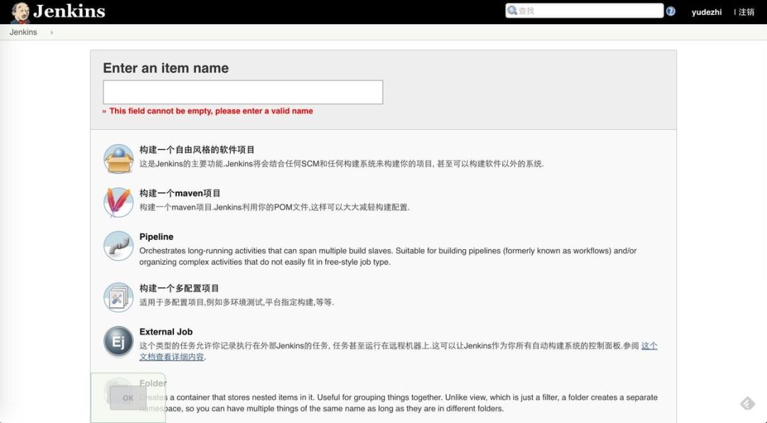 新建 -> 输入项目名称 -> 选择“构建一个自由风格的软件项目” -> 点击ok就行了。