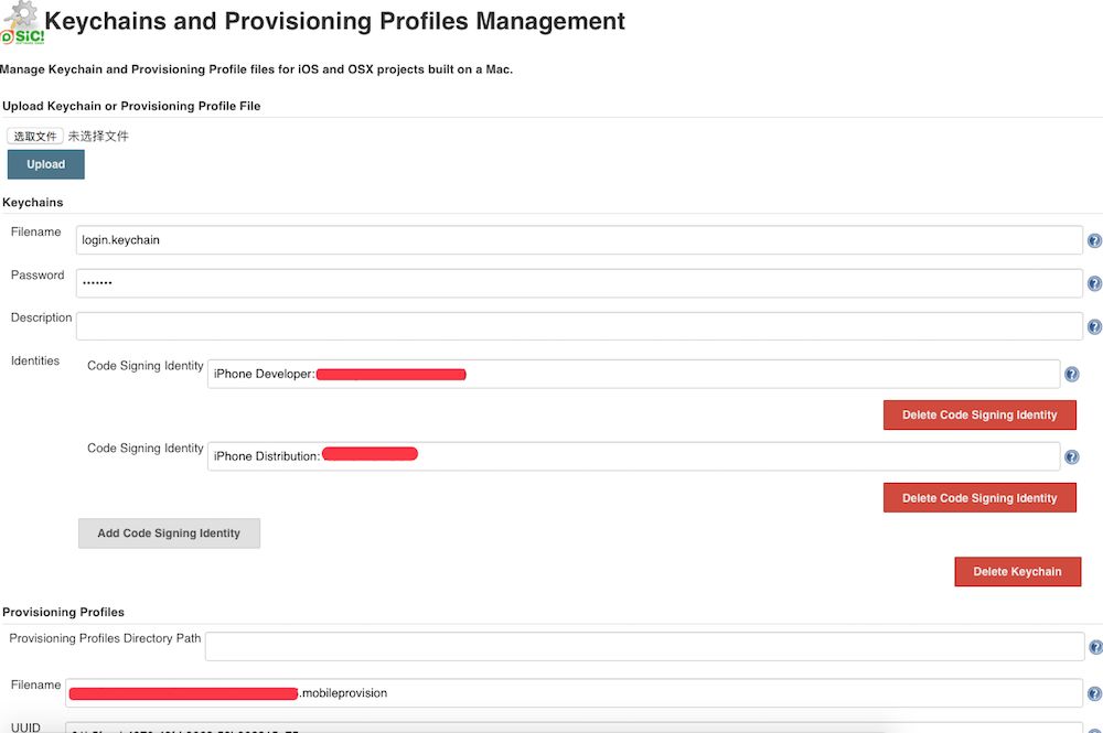这样Adhoc证书和签名文件就在Jenkins中配置好了,接下来我们只需要在项目的构建配置中指定相关文件即可。