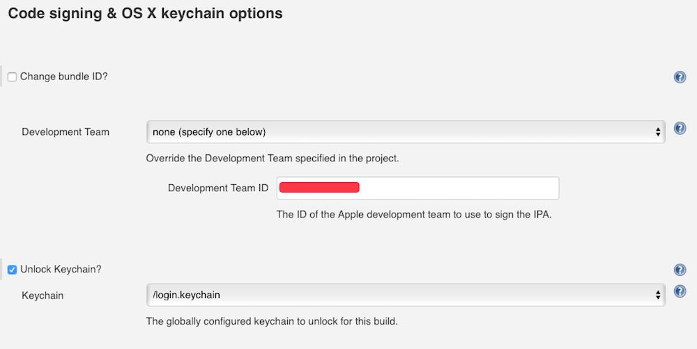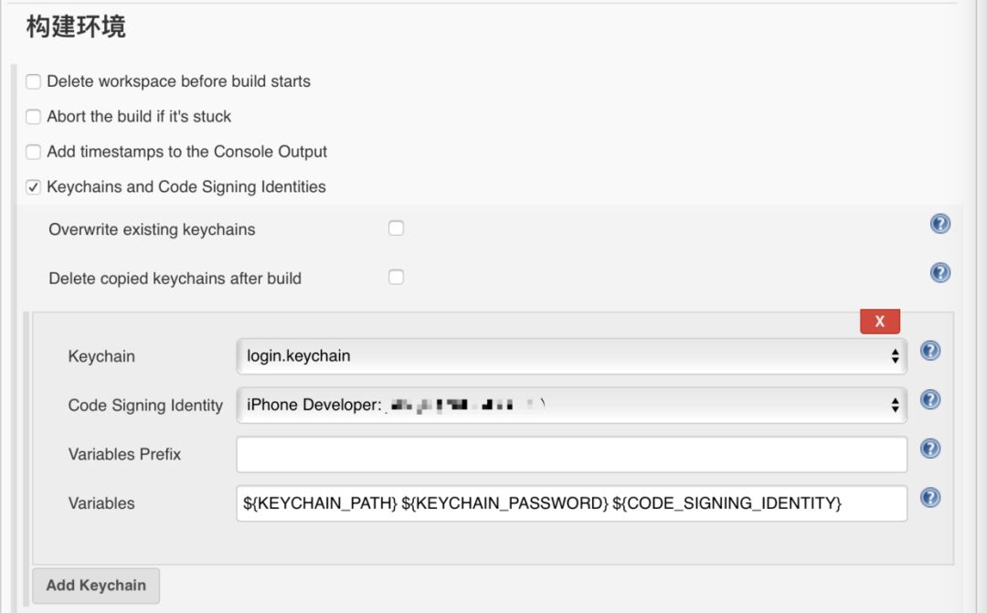 其中,Development Team ID为开发团队ID,可以在钥匙串中的证书详情里查看。勾选Unlock Keychain,显示为之前上传的login.keychain文件。