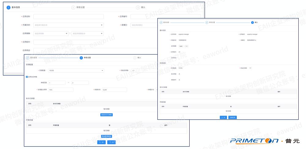 同样,应用创建时需要选择系统与部署区,还需要选择应用镜像,填写应用的版本,参数等。应用支持添加命令行参数及环境变量。应用对外的端口,已在镜像的配置中预置。