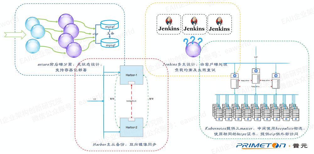 5. 容器云要上生产,高可用是必过的一道坎。普元容器云目前部署主要是四块:Arturo管理平台,Harbor,Jenkins以及Kubernetes。