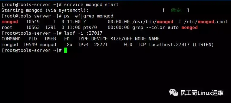 [root@tools-server ~]# lsof -i :27017