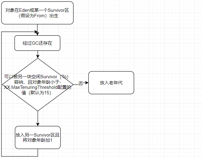 Java中大部分对象不需要长久存活,因此新生代是GC发生最频繁的地方。简单的GC流程大致是: