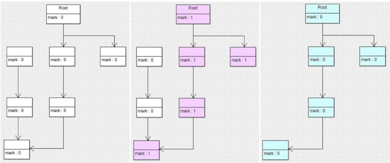 标记: 标记出所有存活对象(根对象的所有可达对象)
