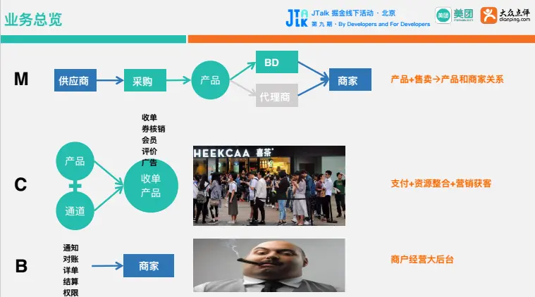 - M端 : 产品 + 售卖 -> 产品和商家关系的处理