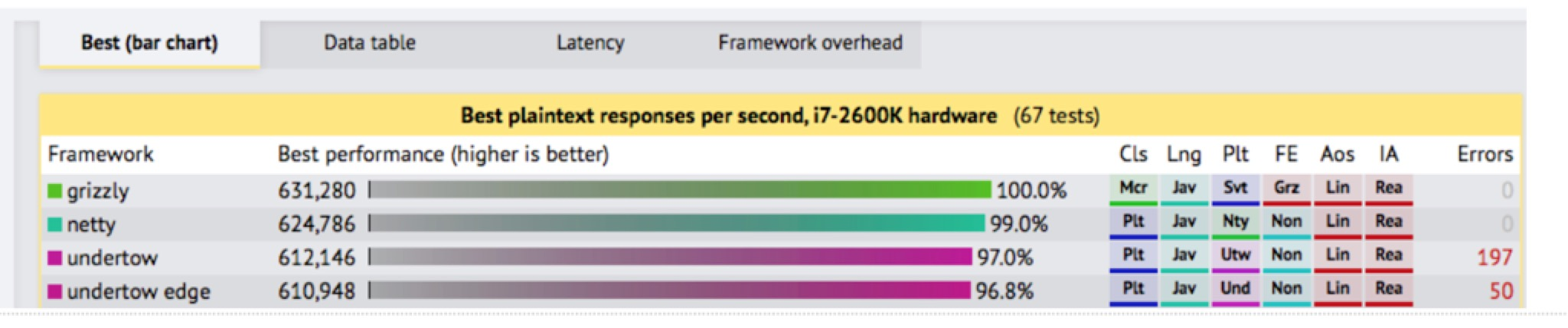 以上是在techempower获取的关于webFrame的纯文本响应测试,可以看到netty在响应速度方面,排名第二,虽然近几年高性能的web框架不断的挑战,netty排名有所下降,但依然还能保持前列位置。