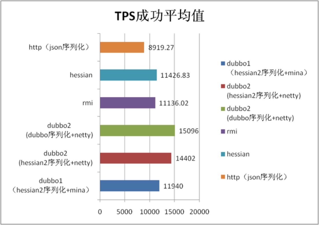 以上是在dubbo的官方测试案例中,给定协议序列化TPS对比,可以看到采用netty的dubbo,在tps方面名列前茅。