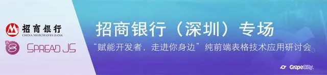 2018 年 6 月 12 日,由葡萄城举办的“赋能开发者,走进你身边——纯前端表格技术应用研讨会”在招商银行大厦盛大召开。来自招商银行——国内顶尖金融机构的数十位技术专家,与葡萄城的前端技术大牛们,围绕“无纸化在线协同办公和纯前端表格技术应用”两大主题,进行了深入的探讨,就在线文档、高效打印和数据处理等热门话题发表了深刻见解,并给与了葡萄城纯前端表格控件 SpreadJS 以高度评价。