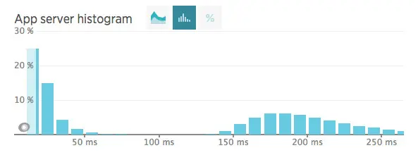 这张图显示了2016年9月最后一周New relic上的统计数据。文章列表页面的HTML的响应时间基本在50ms以下。