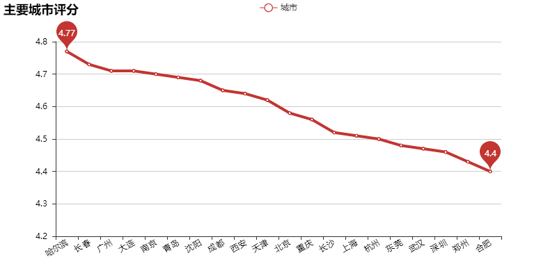 打出最高分4.77分的正是沈腾家乡的省会城市哈尔滨(沈腾出生于黑龙江齐齐哈尔),看来沈腾在黑龙江还是被广大父老乡亲所认可的。最低分和次低分来自于合肥和郑州,今后的开心麻花可以考虑引入加强在中部地区的宣传。