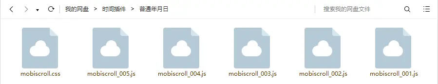 引入五个js文件 (顺序不可乱) ,一个css文件(mobiscroll.css) 我的百度云盘。