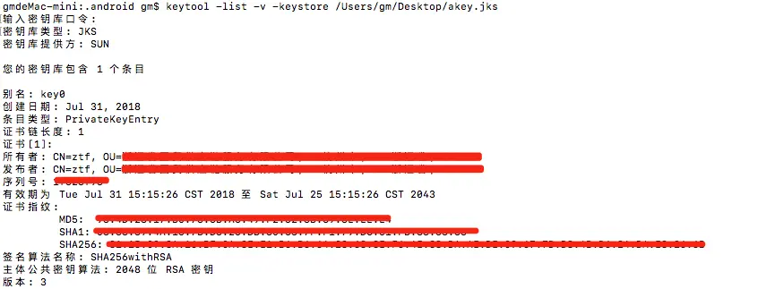 6.等待打包成功后打开终端,输入keytool -list -v -keystore 加路径,再输入密码即可