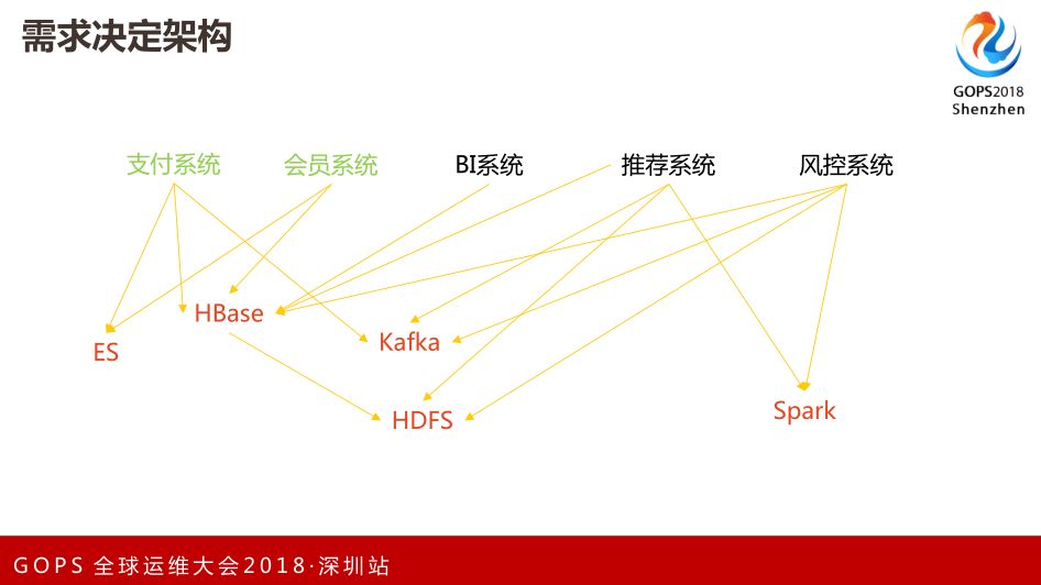 我们先看一下一直播和小咖秀大数据的现状。当我们去考虑一直播和小咖秀整体大数据架构时,我把公司所有需要大数据业务的需求整理好,我尽量把它压缩到只需要到ES、HDFS、Kafka、HBase、Spark等,简单聚焦几方面。