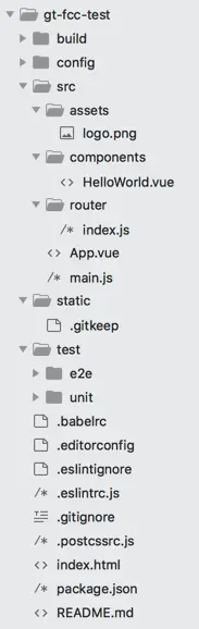 在拆解项目的过程中,划分目录结构很关键。当然,现在的CLI在目录结构上帮我们拆好了一部分,比如下面这个vue-cli给我们生成的结构: