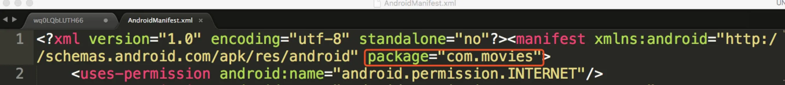 接下来找到apk的包名,在AndroidManifest.xml这个文件中