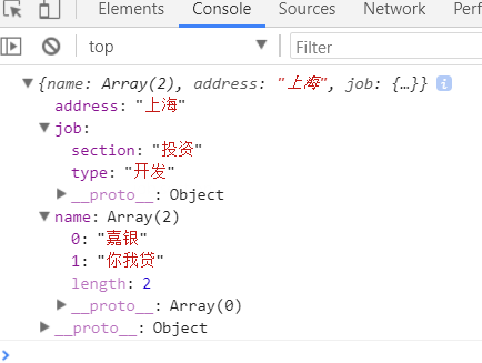 console.log(obj2.name) //["嘉银", "你我贷"]