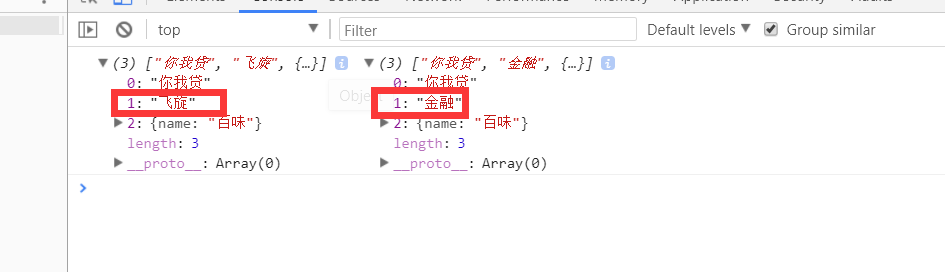 console.log(obj1.name) //["嘉银", "你我贷", "飞旋"]